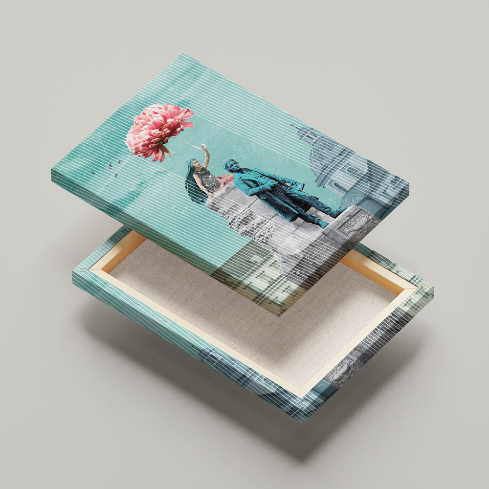 Sve motive u dimenziji 50x70cm, osim na standardnom papiru, možete naručiti i na platnu. Platno je zaštićeno posebnim premazom i (p)ostaje dugovječno. Pričvršćeno je na drvene letvice, ima kukicu i spremno je za vješanje na zid.